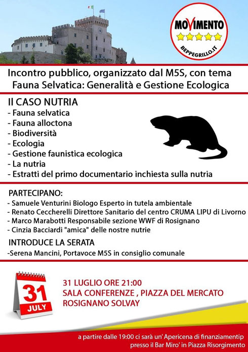 Öffentliche Versammlung organisiert von M5S ( Partei Beppe Grillo ) mit dem Thema Wildtiere, allgemein und ökologischer Umgang